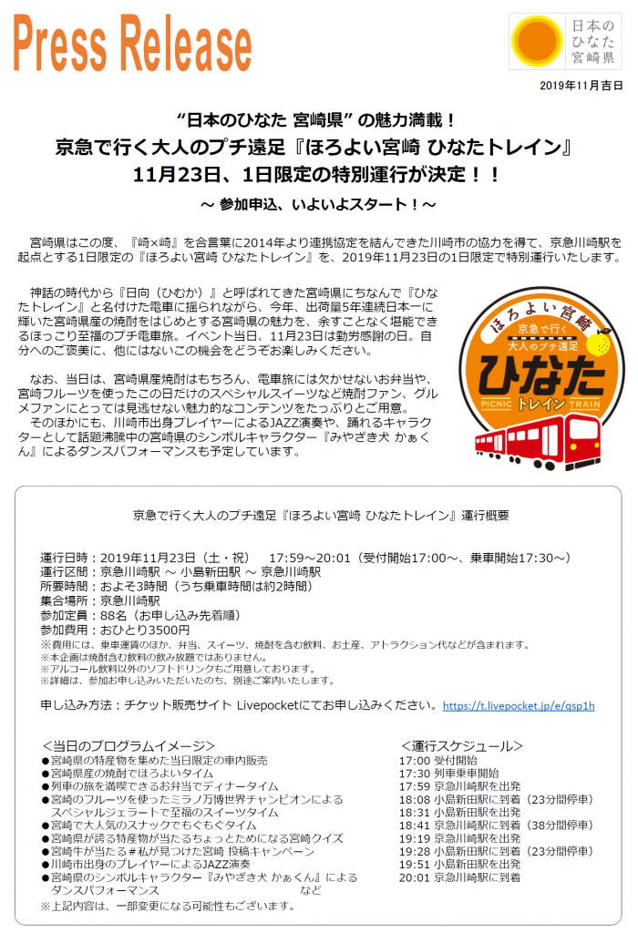 京急で行く大人のプチ遠足『ほろよい宮崎 ひなたトレイン』11月23日、1日限定の特別運行に参加致します‼️